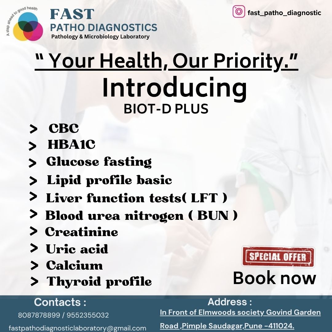 Fast Patho Diagnostics is the Best Pathology Lab, Diagnostic Centre in Pimple Saudagar, Pimple Gurav, Rahatani, PCMC and Pune. Fast Patho Diagnostics is a trusted pathology lab and diagnostic center located in Pimple Saudagar, Pimpri-Chinchwad, Pune, Maharashtra. Renowned for its commitment to quality, accuracy, and patient-focused care, Fast Patho Diagnostics offers a comprehensive range of diagnostic services to support timely and effective med ... View More